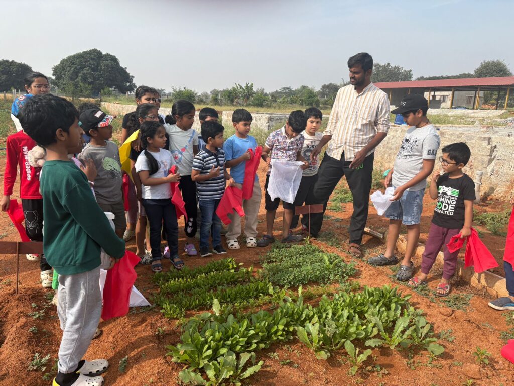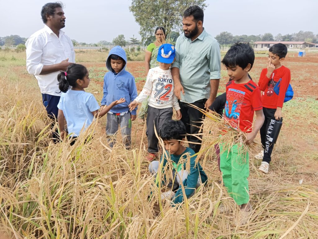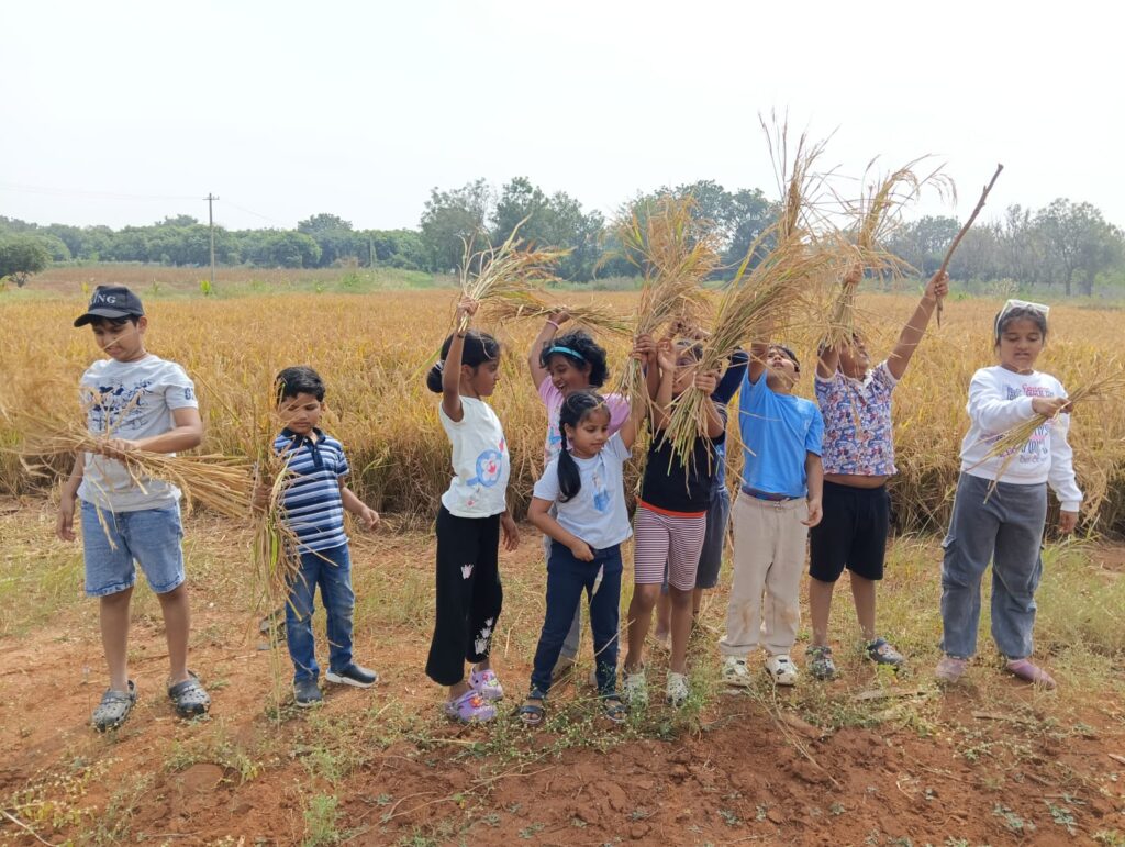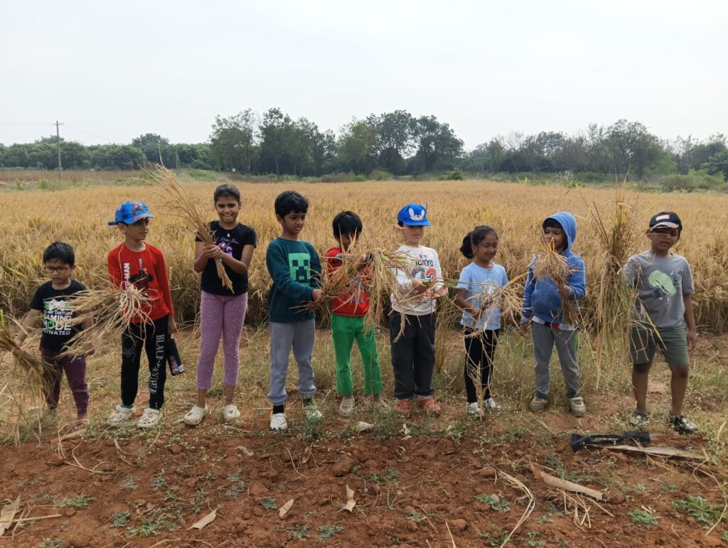 If harvesting palak and methi made them feel proud, cutting paddy made them feel powerful. Here they were, touching one of India’s oldest agricultural traditions, participating in the cycle that feeds millions. For the children, it was an unforgettable glimpse into the journey of their food—far richer and more meaningful than anything a textbook could offer.