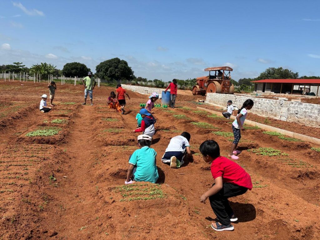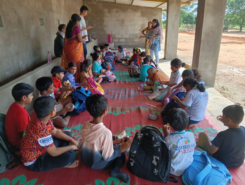 By the end of the morning, the children had not only learned important farming practices but also experienced them in a joyful, hands-on way. With muddy hands, smiling faces, and hearts still echoing with the story of Sanjeevani, they gathered together to enjoy a snack before heading back.