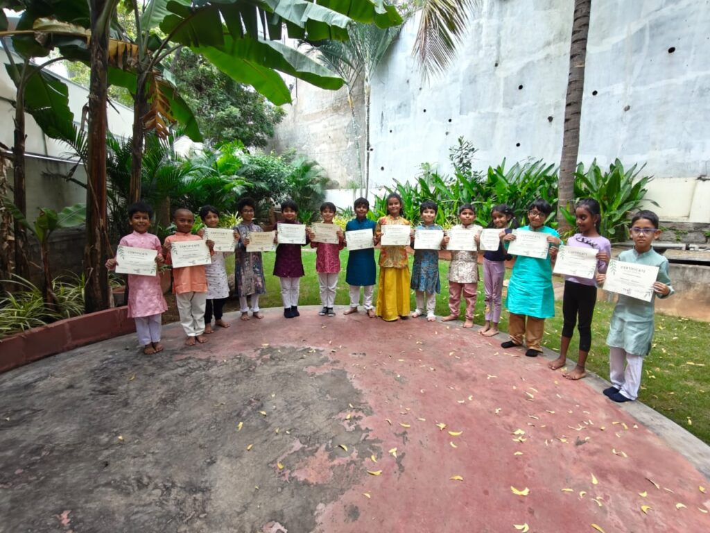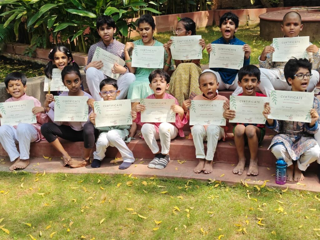 About a month ago, the Seeds to Greens program at Farm Lab came to a fulfilling close as the Junior and Advanced Elementary students of Shriram Montessori School harvested the lush greens they had lovingly grown. Today, the children were joyfully awarded their “Seeds to Greens” Participation Certificates, a wonderful reminder of their journey from sowing seeds to reaping their harvest.