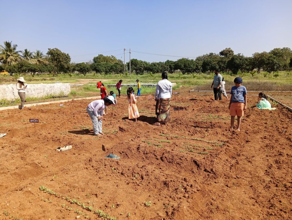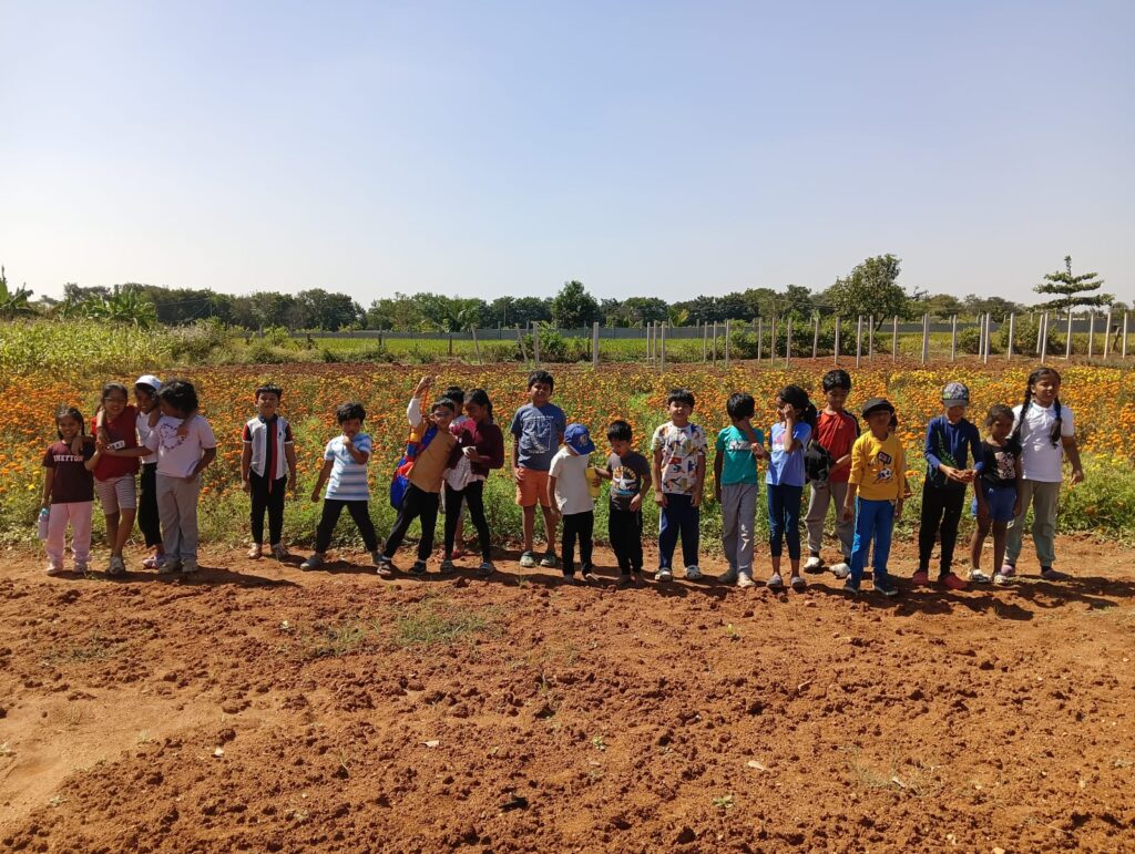 By the end of the session, the groups swapped activities — those who’d worked with flowers now tended to their plants, and the little farmers became garland-makers. The farm was alive with joyful energy, the scent of marigolds, and the earthy perfume of wet soil.