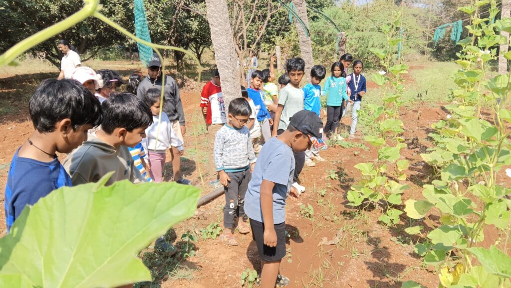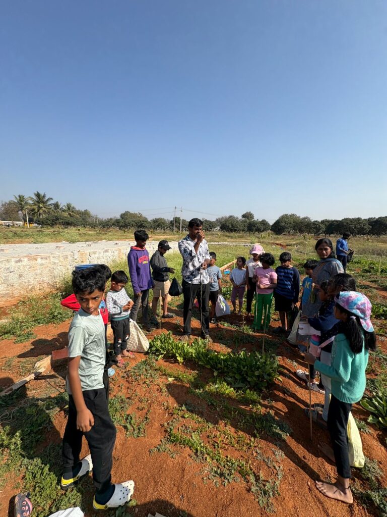 Once the farm work was completed, the session continued with a nature walk to our nearby farm. The children enjoyed walking through the farm, observing plants, soil, insects, and the natural surroundings. It was a calm and refreshing experience that helped them connect more deeply with nature.