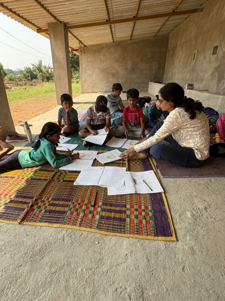 Next came the heart of the morning—Jeevamrutham, the natural microbial tonic they had learned to prepare last week. Children carried it like treasure and poured it around their young plants, watching it disappear into the soil. This is what nourishment looks like, they realised—not from a bottle on a store shelf, but from ingredients that come straight from nature and return to it.