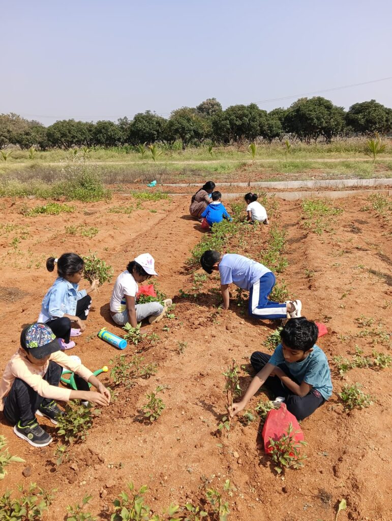 One of the highlights of the day was the harvesting of Gongura. To a child, harvesting is pure thrill. It is the moment nature speaks back: “Here is your reward.” As they proudly held up their green bundles, the joy on their faces reminded us that children do not need screens or stimulation—they need purpose.